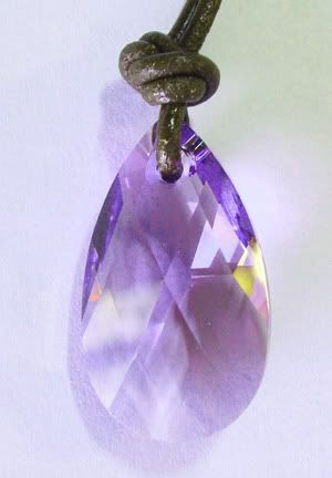 Sora smiles a bit. He then goes into his pocket and takes out a a purple crystal necklace. "I got this for you." | |